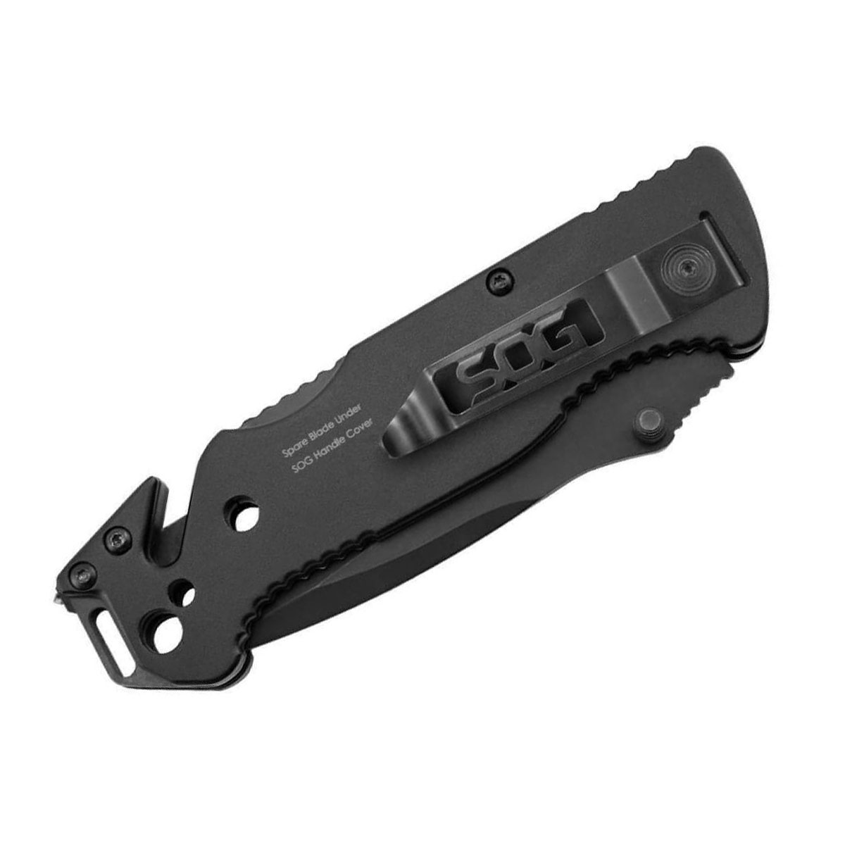 Držak je napravljen od aluminija kako bi se smanjila težina te se na njegovu kraju nalazi razbijač stakla, rezač užadi i pojasa te oštrica za skidanje izolacije.
